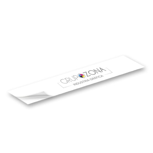 • Papel adhesivo de 80 g/m², cuché mate, reverso con hendidura