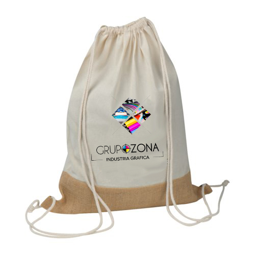• bolsa deportiva de color natural con fondo de yute resaltado ópticamente y cordel como asa