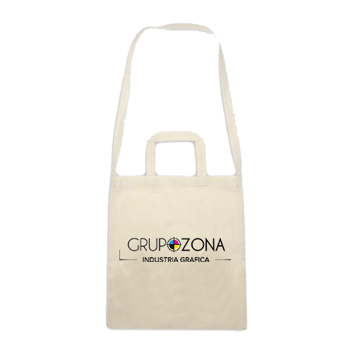 • bolsa de algodón en color natural con un asa larga para colgar y dos asas cortas para la mano