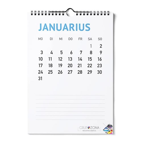 Notas sobre datos de impresión Calendario de pared con encuadernación en espiral, A3