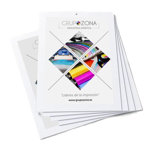 • A elegir, en papel cuché mate/brillo de 135 g/m² o de 170 g/m².