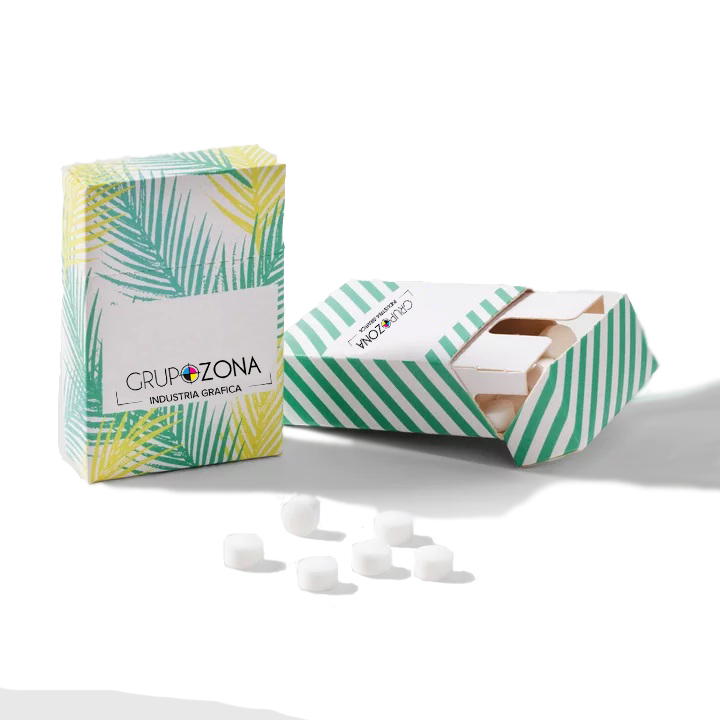 Grageas de menta en cajas de cartón