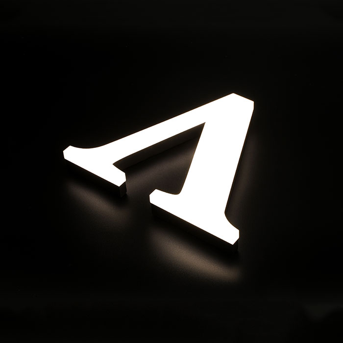 Este modelo de letra corpórea está fabricada en acero inoxidable iluminación frontal de tipo LED y metacrilato. Puedes personalizar el acabado de tu letra y ajustarlo a tu marca o imagen de empresa. Disponemos de distintos colores de metacrilato y todas las opciones en lacado que necesites.