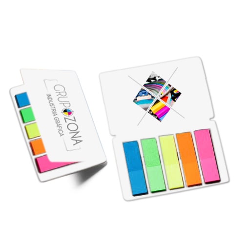 • juego de cinco marcadores adhesivos de colores en formato de tarjeta