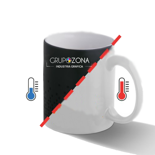 • Particularidad: al llenarla con un líquido caliente, esta taza cambia de color al blanco y el motivo impreso se vuelve visible.