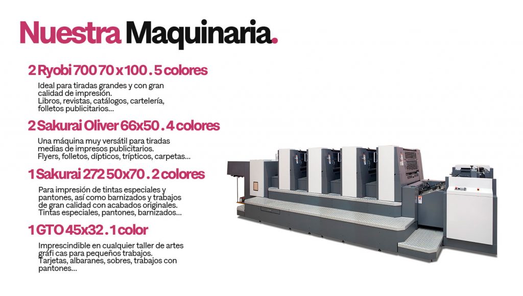Seguimos la normativa ISO 12647:2-2004 de color tanto en off set, digital o rotulación, esto significa que tenemos la capacidad de imprimir igual que en cualquier imprenta de Europa que trabaje con esta normativa.